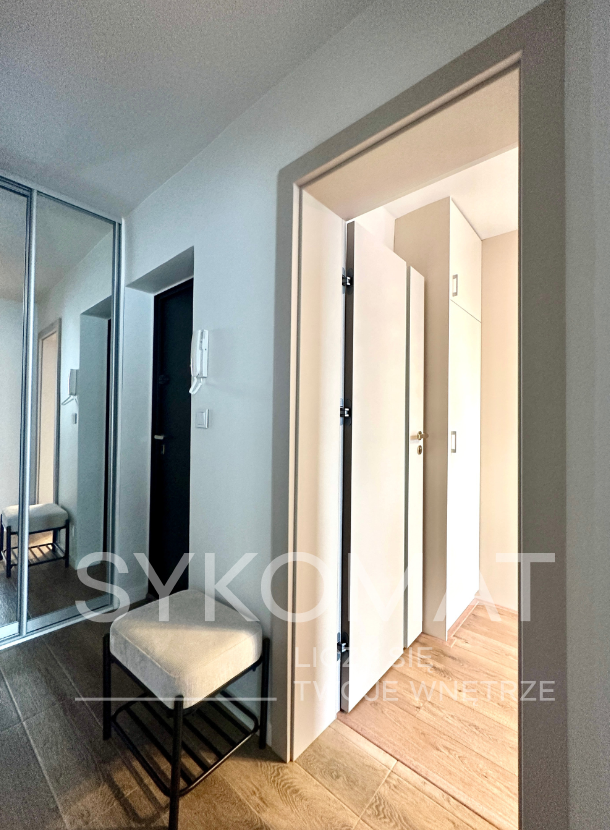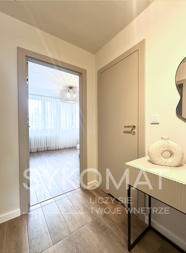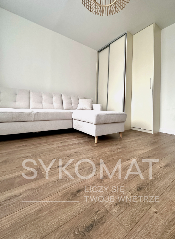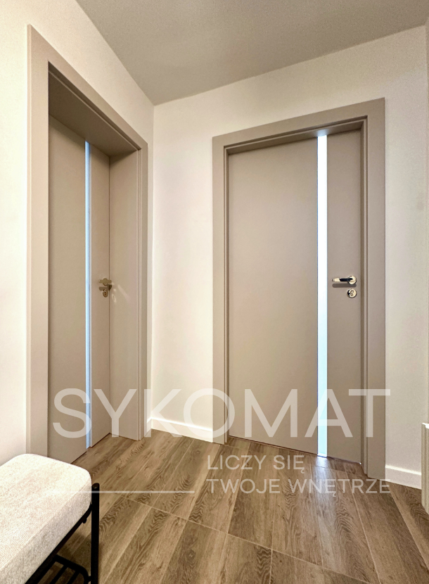 Zakupione w Sykomat: drzwi Porta FOCUS 4A w kaszmirowym laminacie, klamki Infinity Line model Wenus Fit w kolorze złotym oraz podłoga: panele laminowane Premium Floor, dekor: Dąb Francuski.