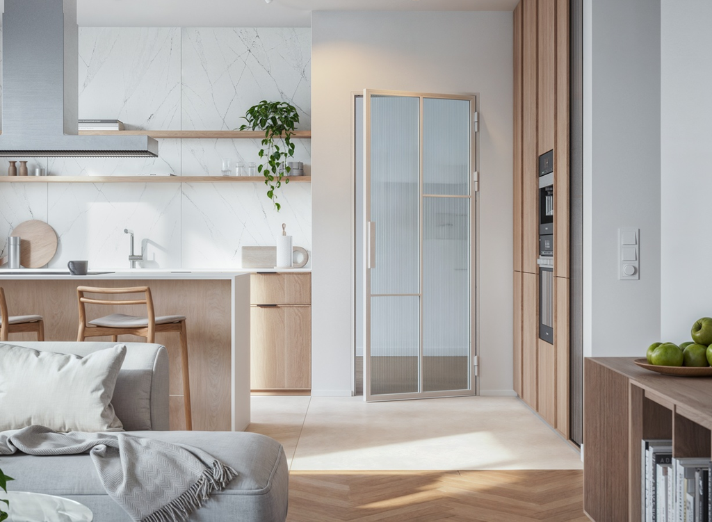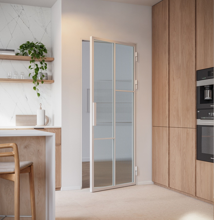 Drzwi są otwierane za pomocą pochwytu. Przezroczysta szyba maksymalizuje wykorzystanie naturalnego światła.